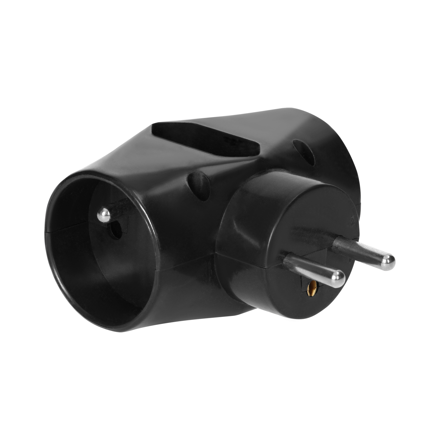 Triple splitter with two E-type (French) sockets and one Euro-type, flat socket. Available in white or black color.