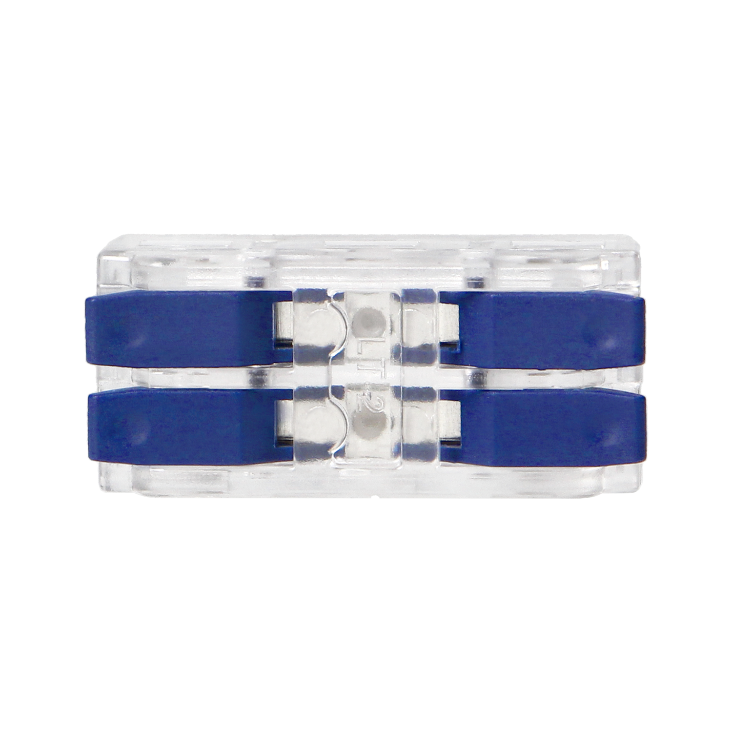 At the top of each double-sided connector are two opposite levers that crimp and stabilize the wires in the right places. The levers are made of resistant and somewhat flexible material so that they can withstand repeated opening.