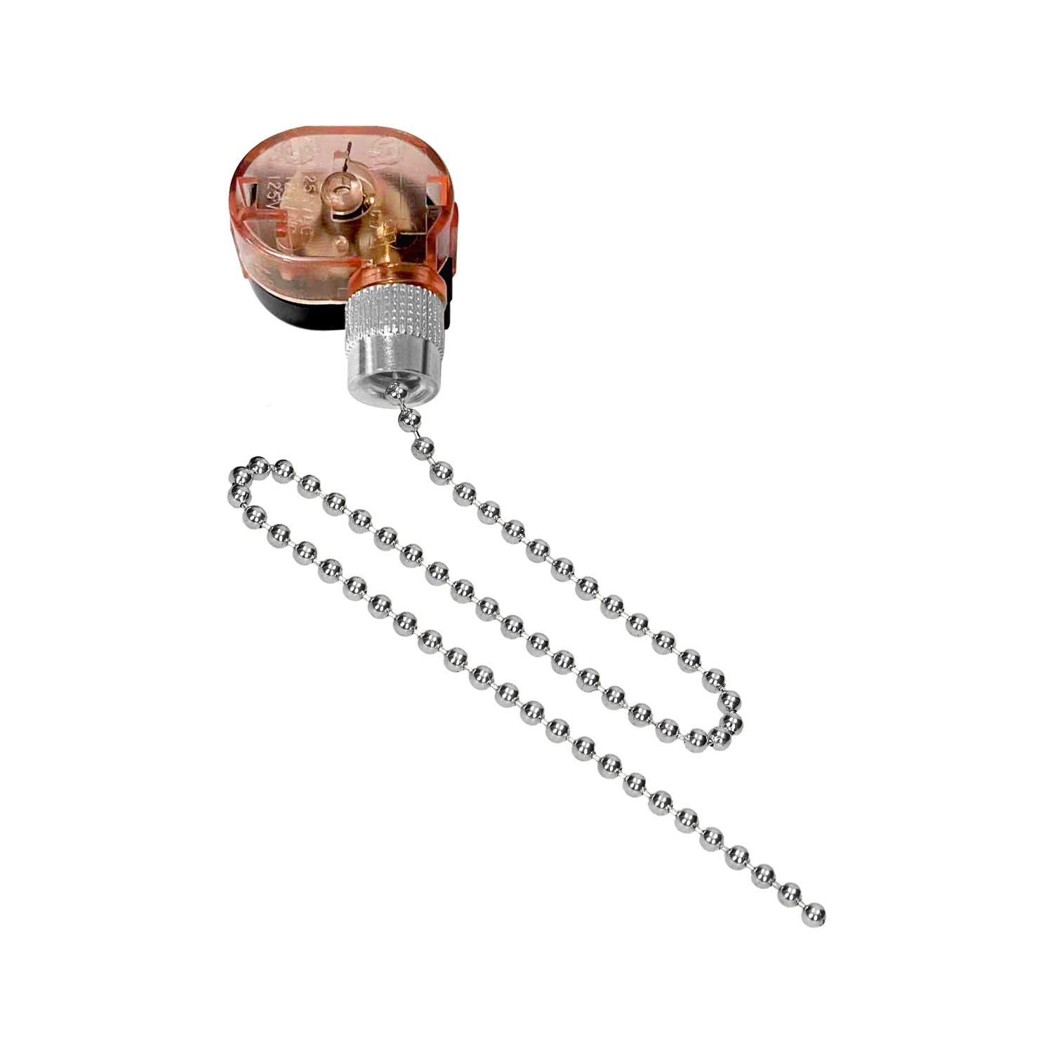 The body made of PC and copper ensures stable operation. The silver, glossy finish complements lamps and devices with cooler housing colours. The silver control element stands out well against the black/transparent background, so you can immediately see where the cable (chain) is.