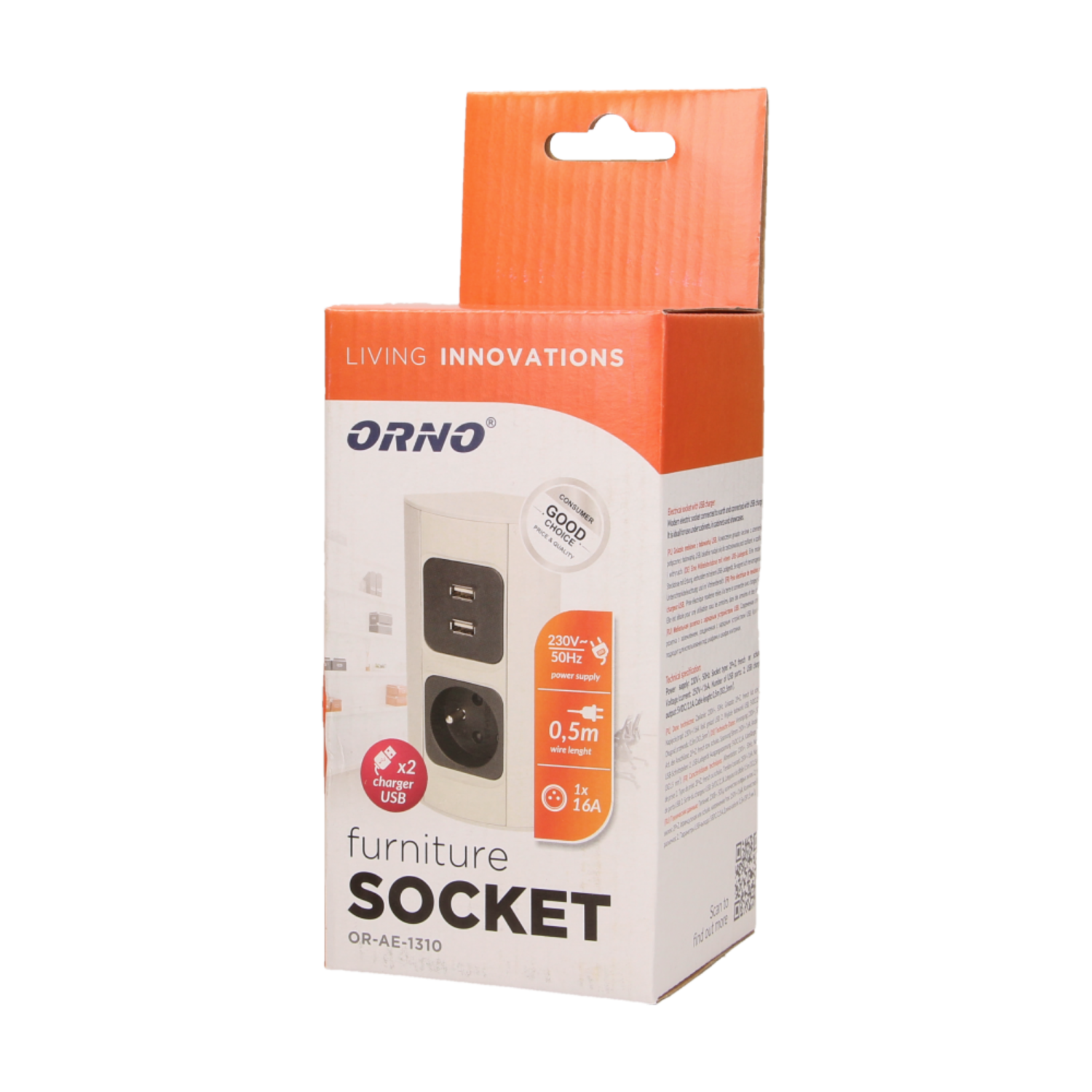 A set of two power sockets 2P+Z with built-in USB charger. Designed for indoor installation under cabinets, in cabinets and shop windows.