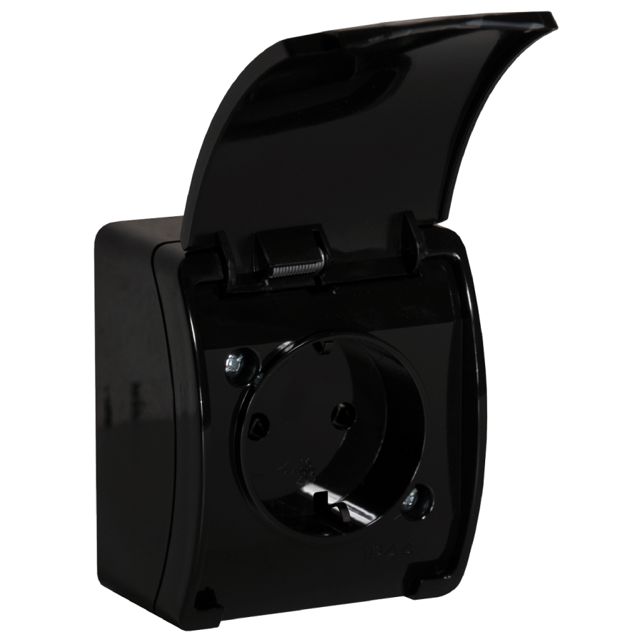Gniazdo pojedyncze z uziemieniem typu F (Schuko), przeznaczone do montażu natynkowego. Produkt posiada praktyczną klapkę, która chroni wnętrze gniazda przez bezpośrednim dostępem pyłów i wody, dzięki czemu gniazdo może być również montowane w pomieszczeniach o podwyższonej wilgotności, takich jak kuchnia czy łazienka. Produkt wykonany jest z wysokogatunkowego tworzywa sztucznego i występuje w 3 kolorach: białym, czarnym lub szaro-grafitowym. Posiada klasę szczelności IP44, więc może być stosowany zarówno wewnątrz, jak i na zewnątrz. 10 szt.