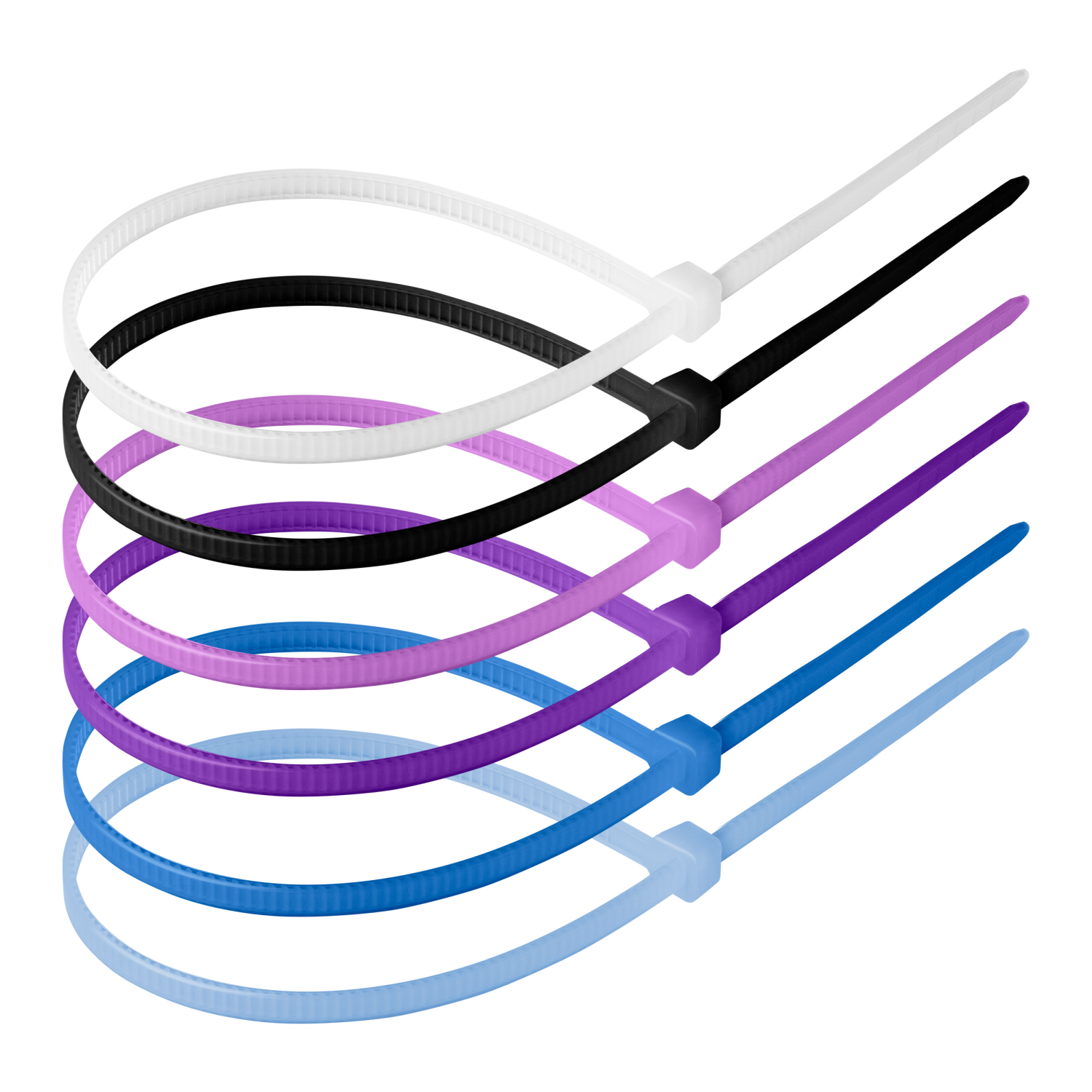 Zestaw opasek kablowych 4.8x300mm, pastelowe, 120 sztuk, W zestawie kolor biały, czarny, różowy, fioletowy, niebieski, błękitny