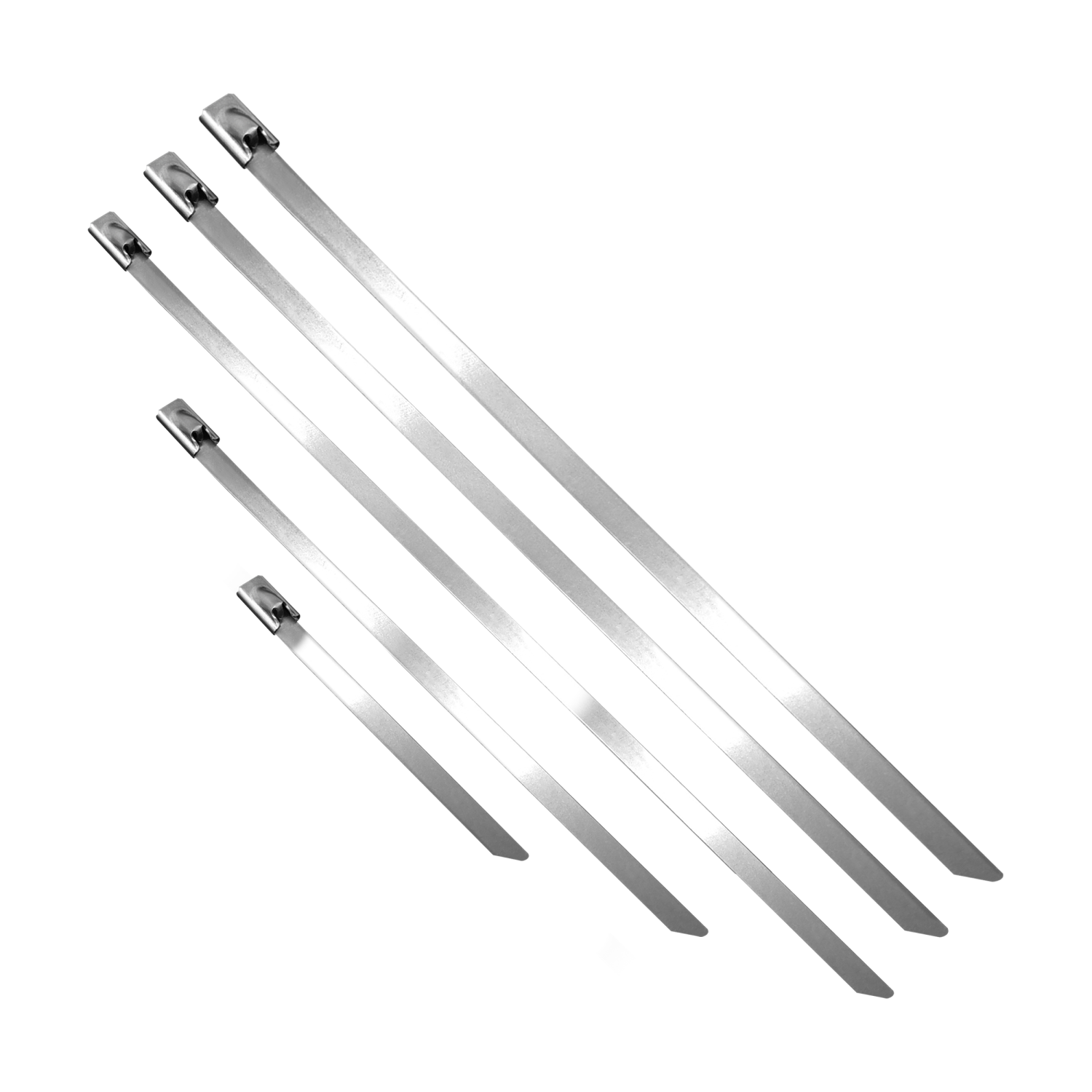 Zestaw opasek kablowych ze stali nierdzewnej, 100 sztuk, W zestawie: 4,6x100mm -20szt , 4,6x200mm -20szt, 4,6x300mm -20szt, 7,9x300mm -20szt, 10x300mm -20szt