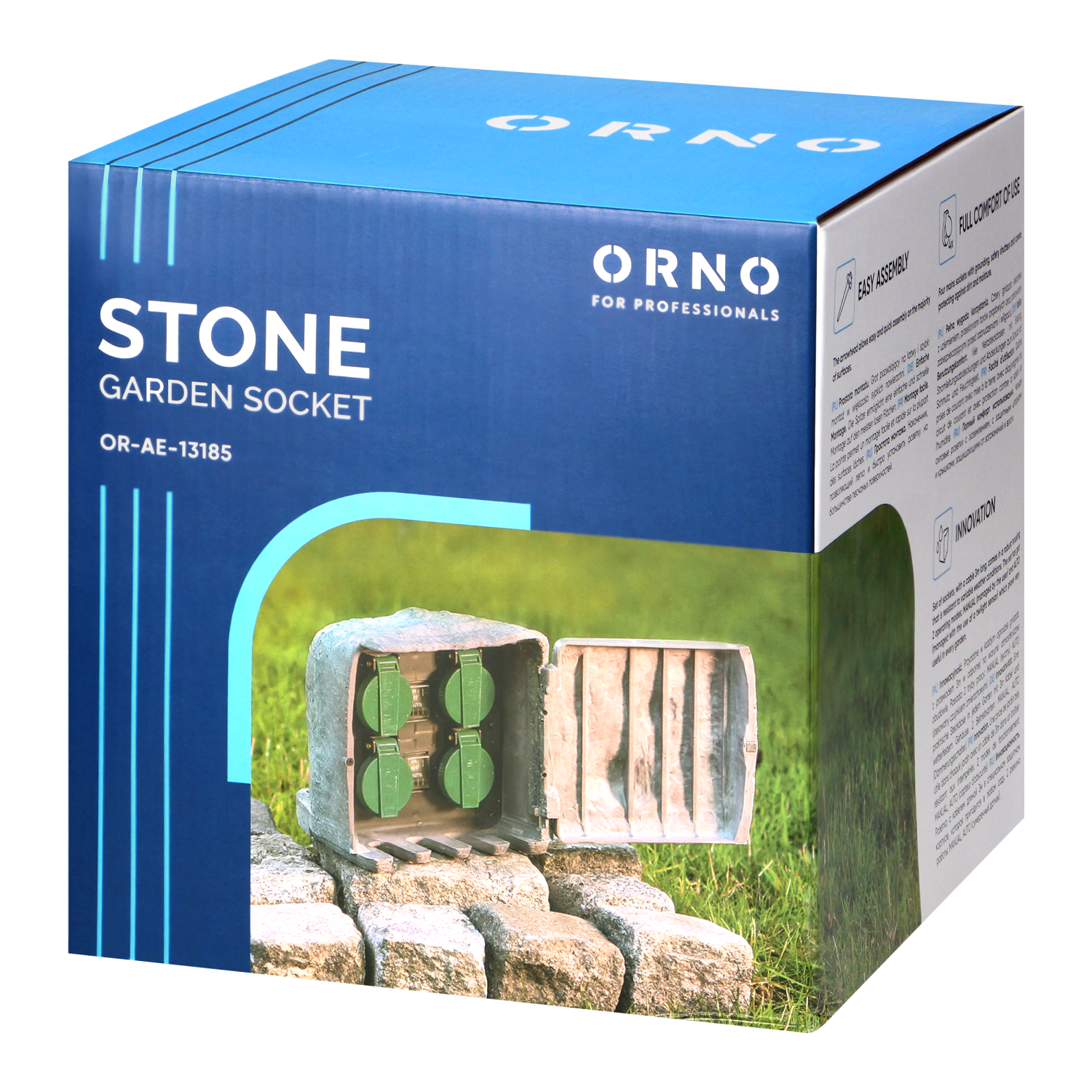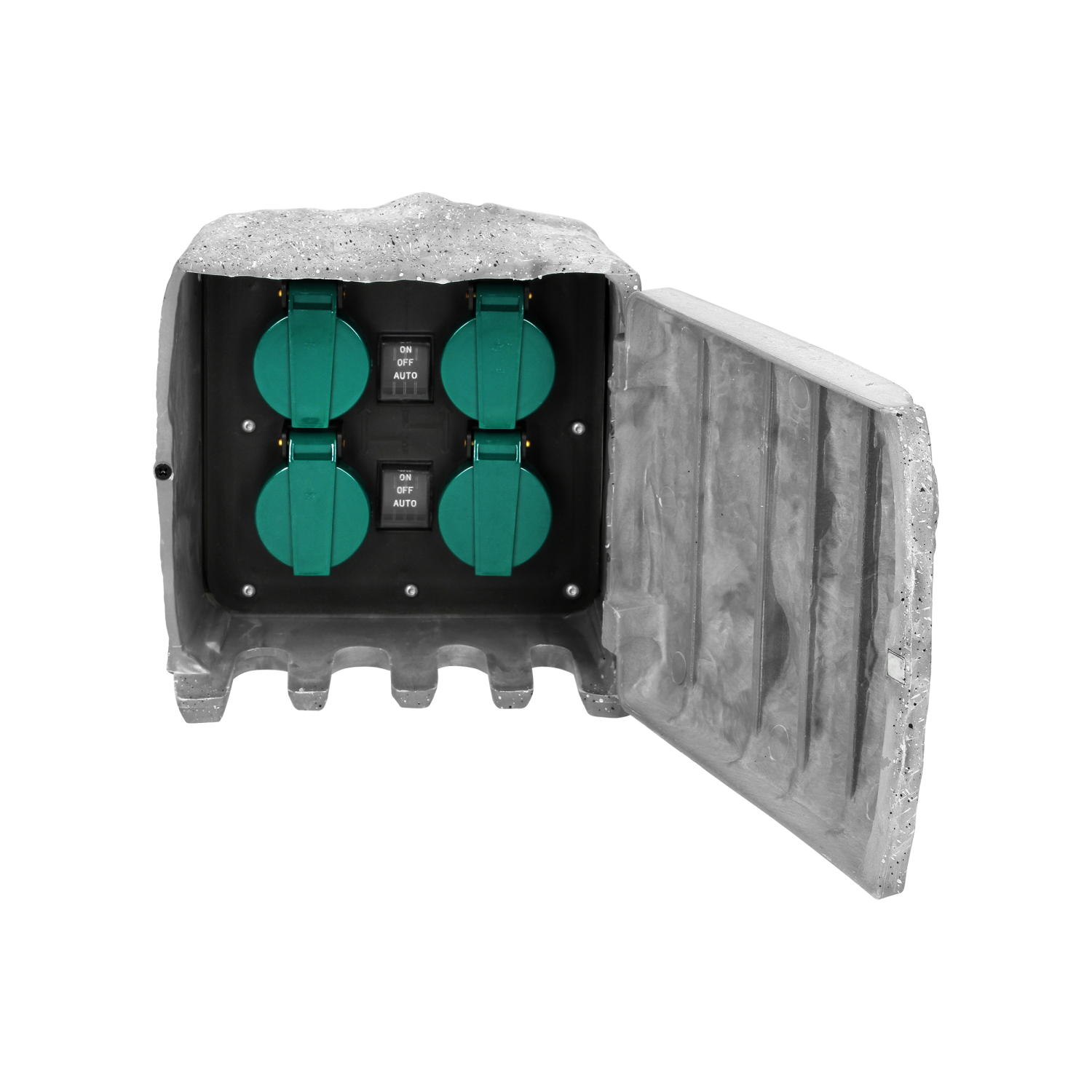 Gniazda ogrodowe (4x2P+Z) w obudowie z tworzywa przypominającej kamień. Dzięki takiemu rozwiązaniu, gniazda są zabezpieczone przed działaniem czynników atmosferycznych i można je łatwo wkomponować w scenerię ogrodu. Posiada gumowy przewód o długości 3m i 2 tryby pracy - ręczny (maks.3680W) lub sterowanie czujnikiem zmierzchu (maks.1100W).