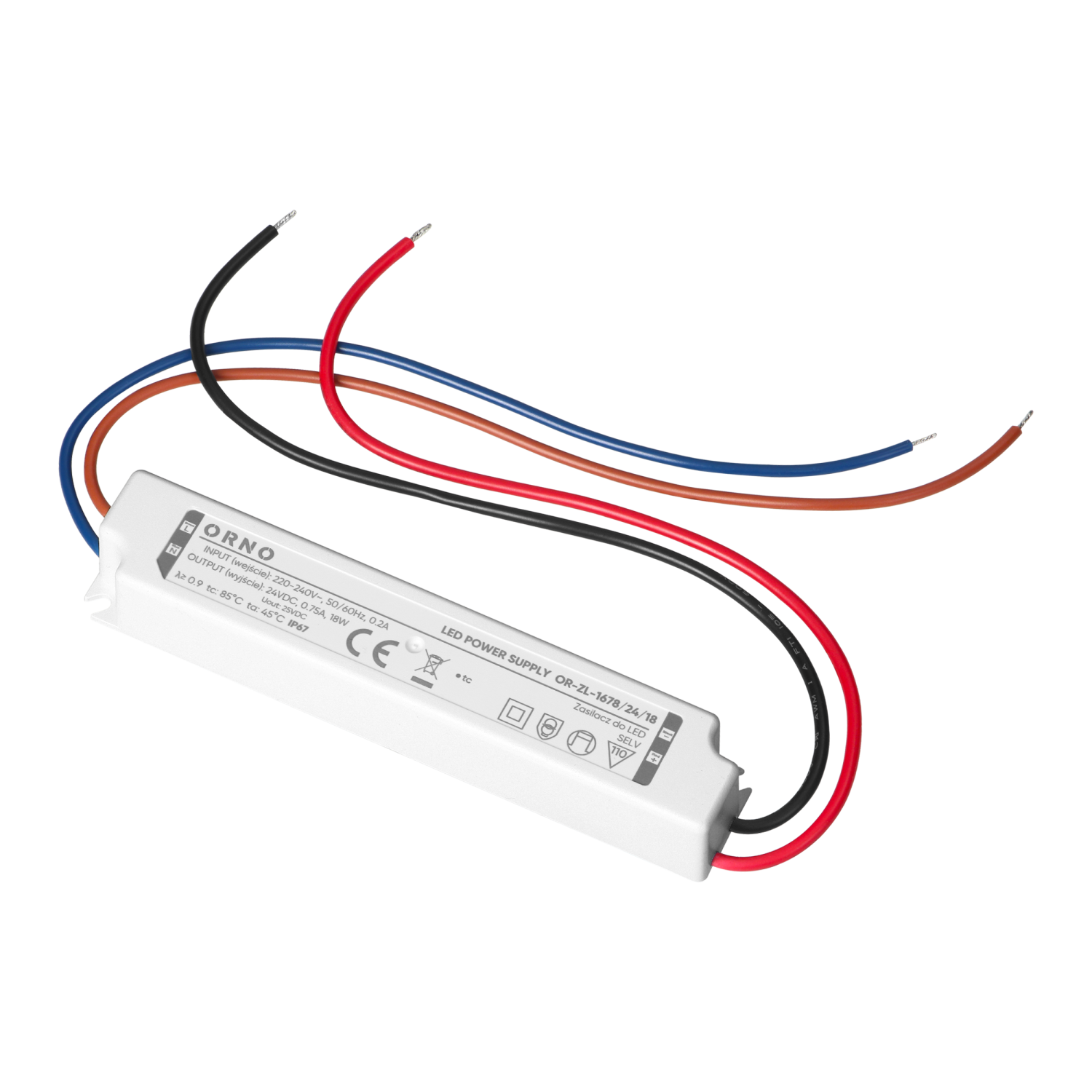 Urządzenie działa w zakresie napięcia wejściowego 220-240V i zapewnia maks. moc wyjściową 18W. Jego hermetyczna, wodoodporna obudowa wykonana z tworzywa sztucznego spełnia wymagania klasy ochrony IP67. Wysoka szczelność obudowy skutecznie chroni zasilacz przed wodą, pyłem i innymi czynnikami zewnętrznymi, co zapewnia długotrwałą i niezawodną pracę nawet w wymagającym otoczeniu, przede wszystkim dla oświetlenia zewnętrznego.